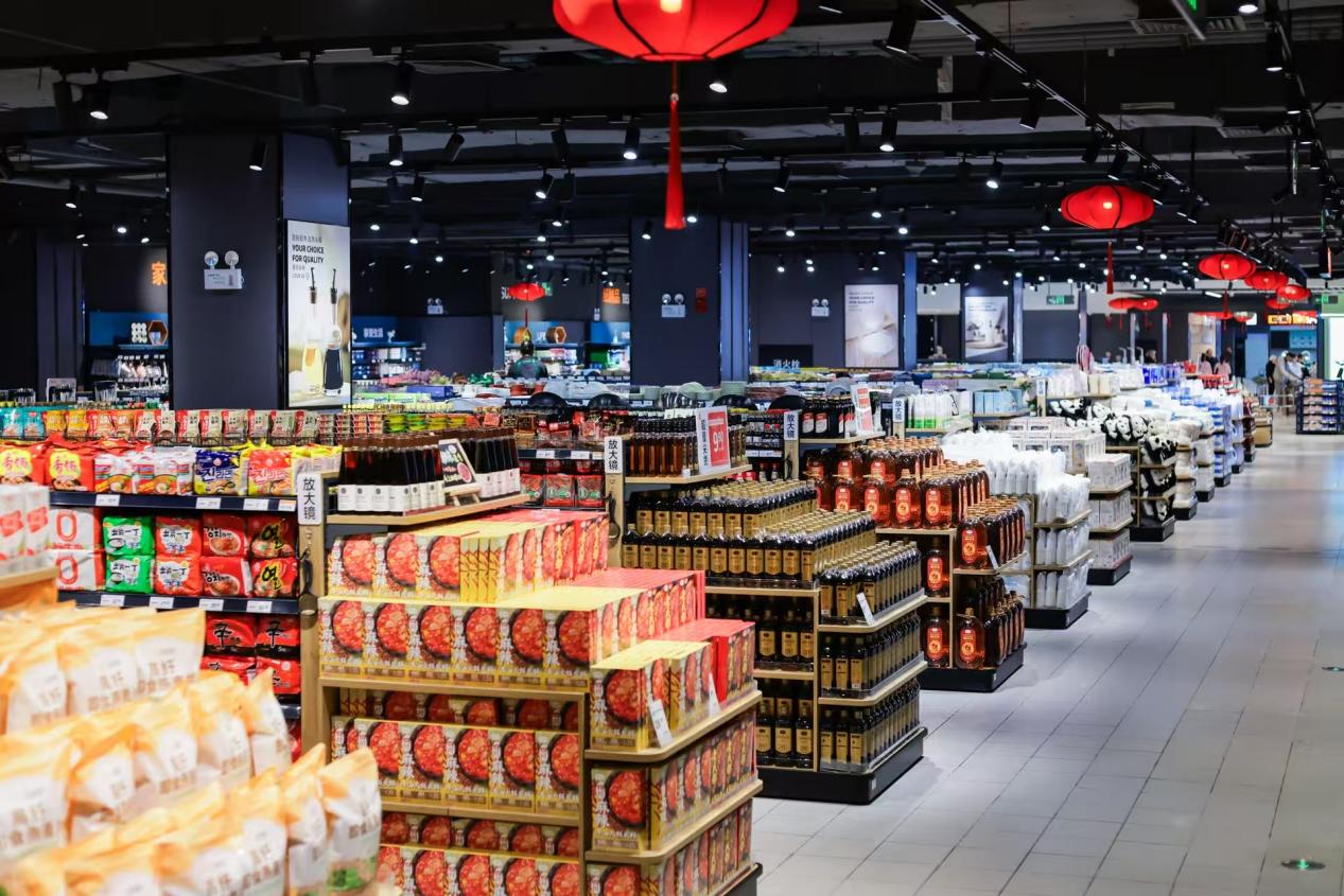 步入焕新后的颍州万达店,最直观的感受是开阔与明亮。门店取消了传统超市的强制动线,主通道大幅拓宽,中岛货架高度统一降至1.6米,层数精简至5-6层,使视野更加开阔,商品陈列清晰。配合简约的视觉设计与适宜的灯光,卖场整体呈现舒适、轻松的品质感。